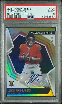 2021 Panini Rookies & Stars 104 Justin Fields Signature-gold PSA 9
