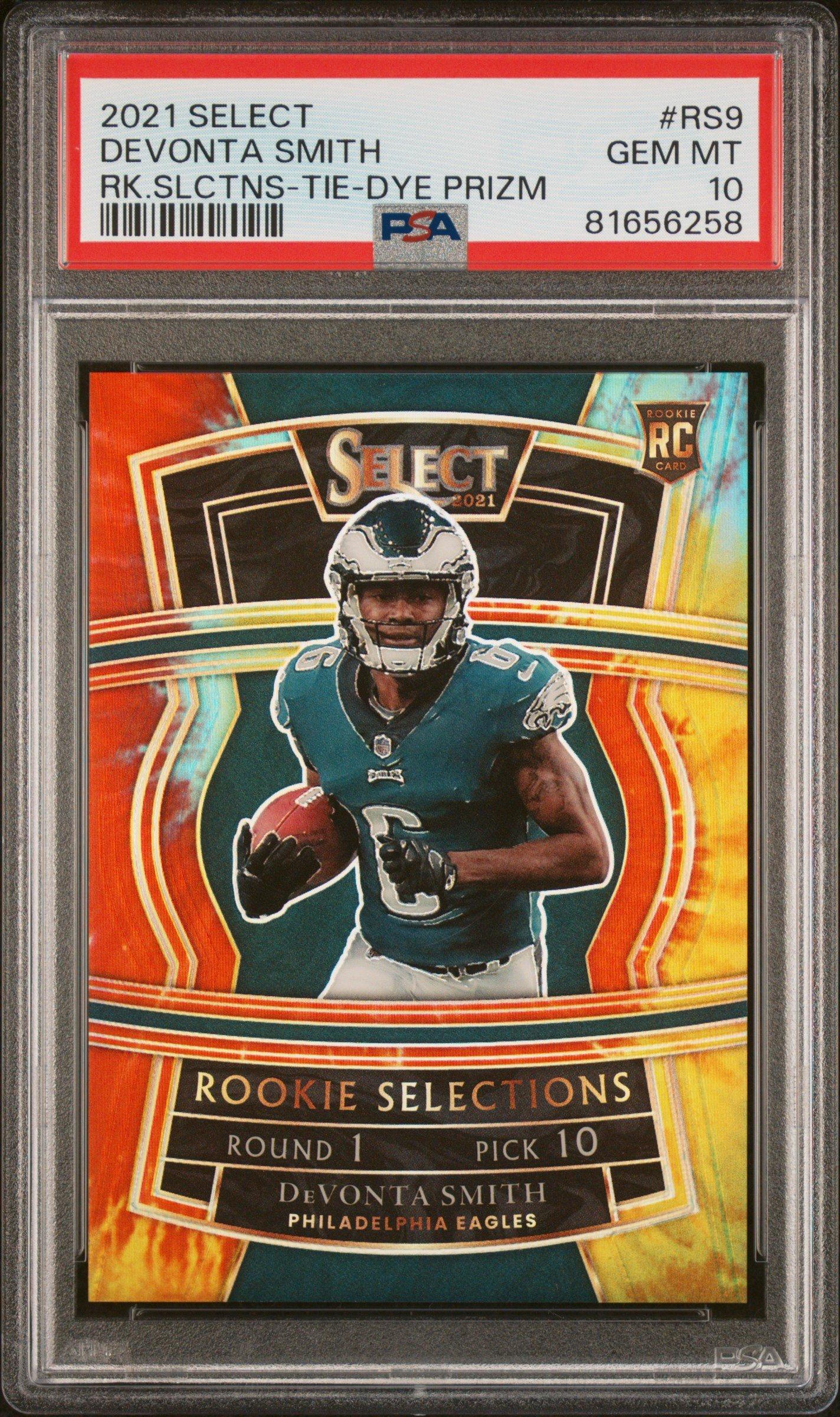 2021 Panini Select Rookie Selections Rs9 Devonta Smith Tie-dye Prizm PSA 102021 Panini Select Rookie Selections Rs9 Devonta Smith Tie-dye Prizm PSA 10