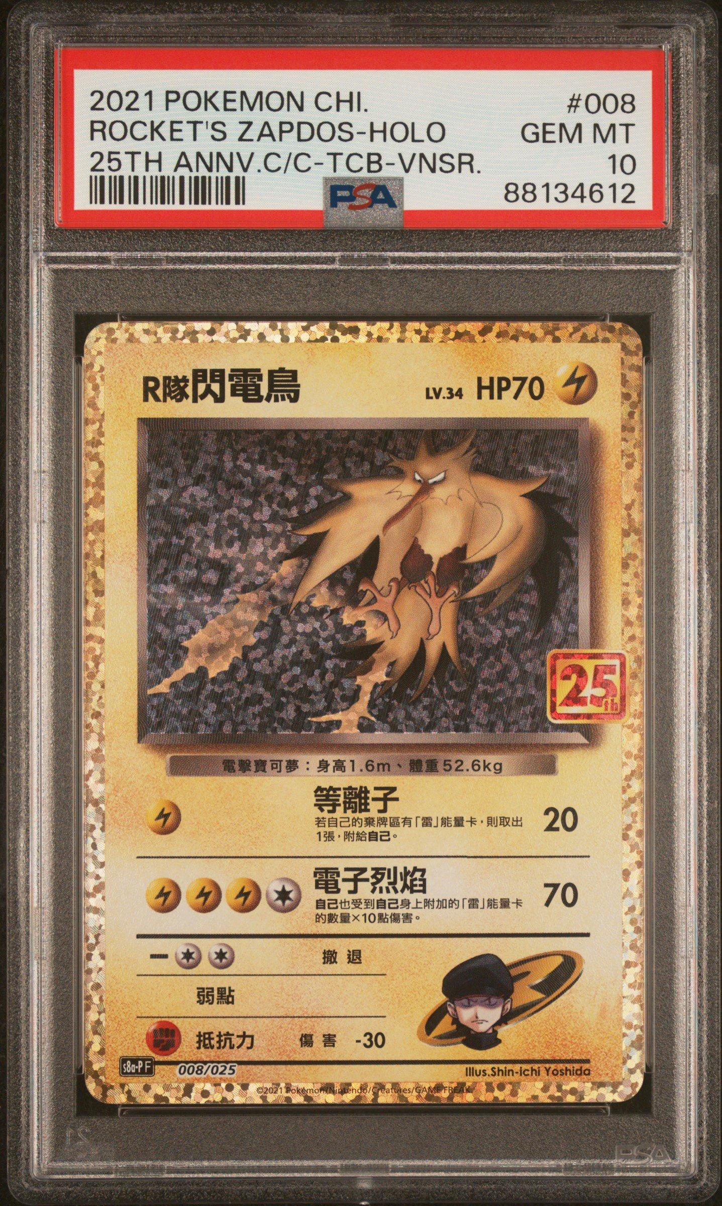 2021 Pokemon Chinese 25th Anniversary Classic Collection 008 Rocket's Zapdos-holo Top Collection Box-venusaur PSA 10