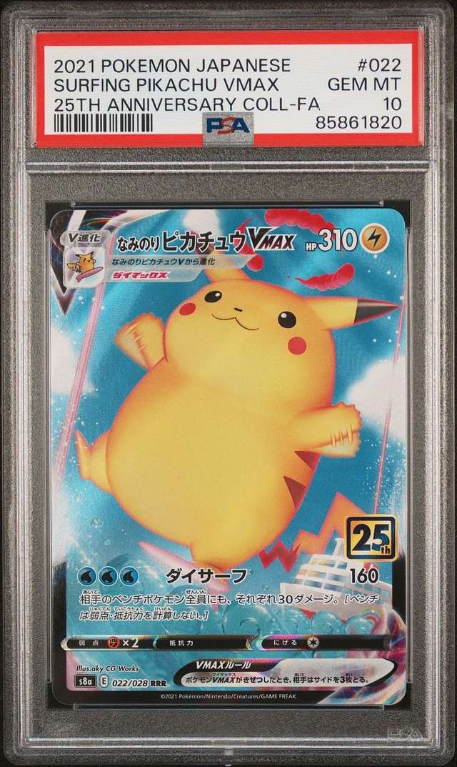 2021 Pokemon Japanese 25th Anniversary Collection 022 Full Art/surfing Pikachu Vmax PSA 10