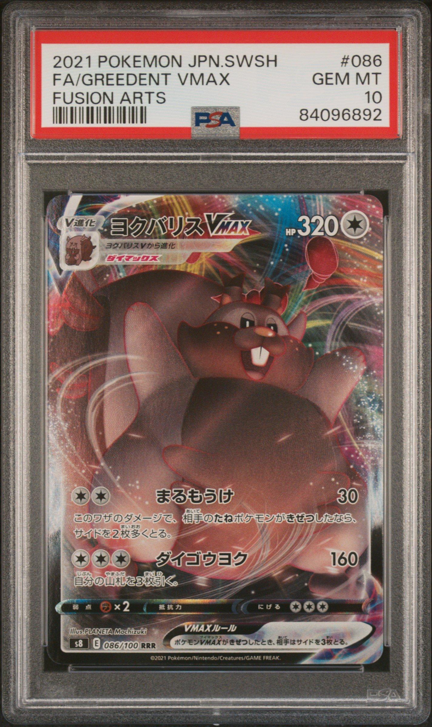 2021 Pokemon Japanese Sword & Shield Fusion Arts 086 Full Art/greedent Vmax PSA 10