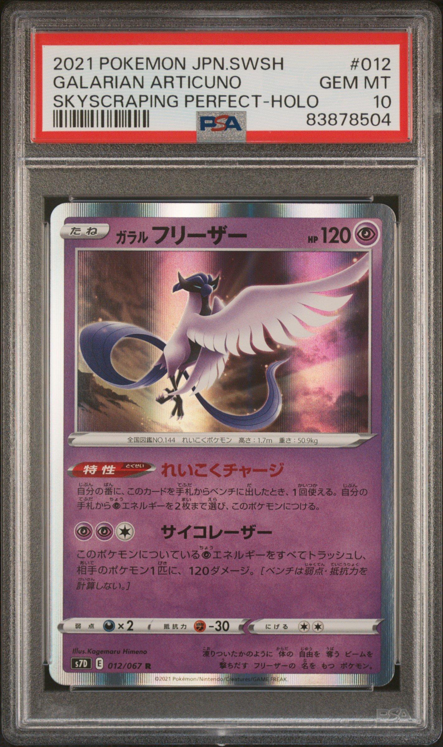 2021 Pokemon Japanese Sword & Shield Skyscraping Perfection 012 Galarian Articuno-holo PSA 102021 Pokemon Japanese Sword & Shield Skyscraping Perfection 012 Galarian Articuno-holo PSA 10