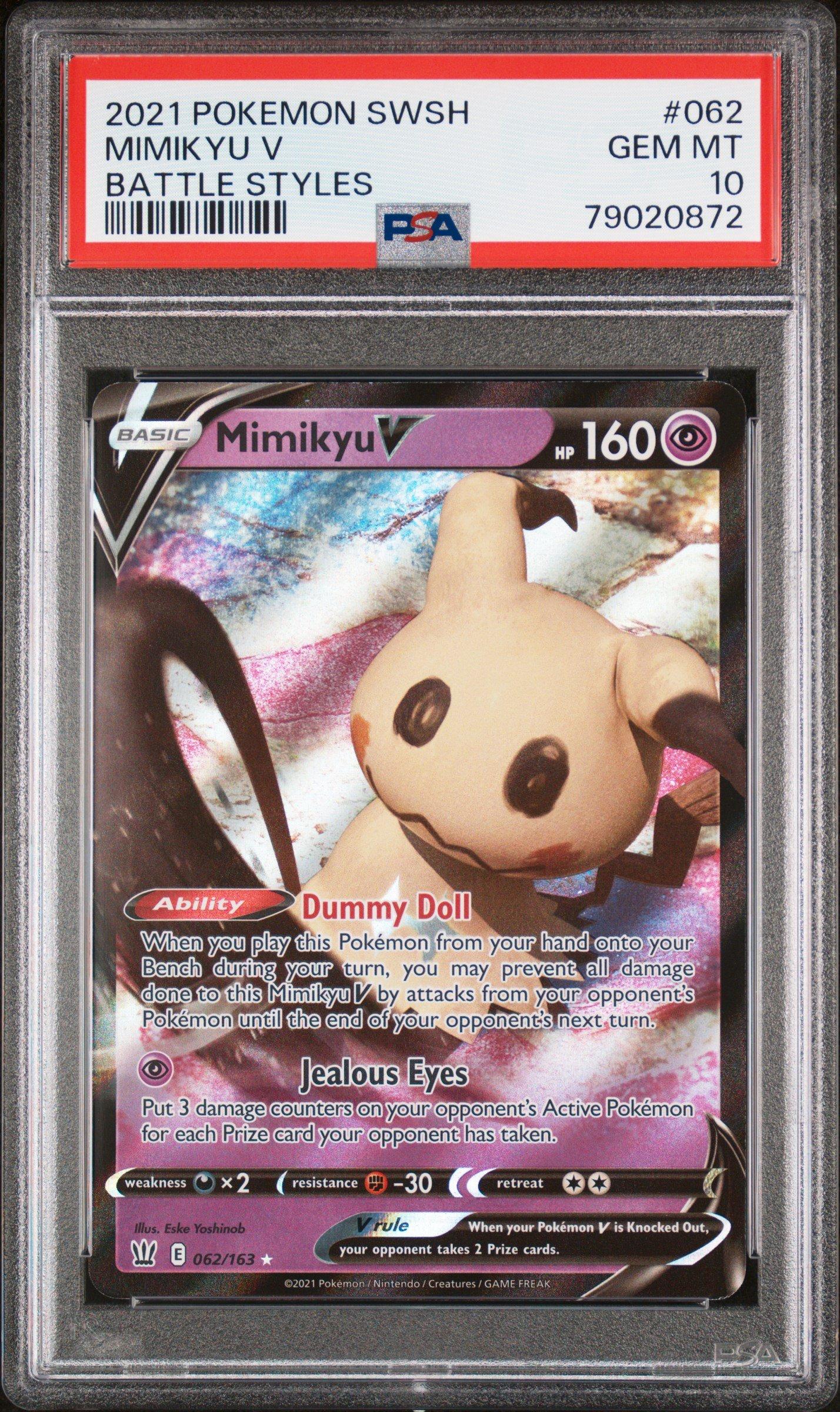 2021 Pokemon Sword & Shield Battle Styles 062 Mimikyu V PSA 102021 Pokemon Sword & Shield Battle Styles 062 Mimikyu V PSA 10