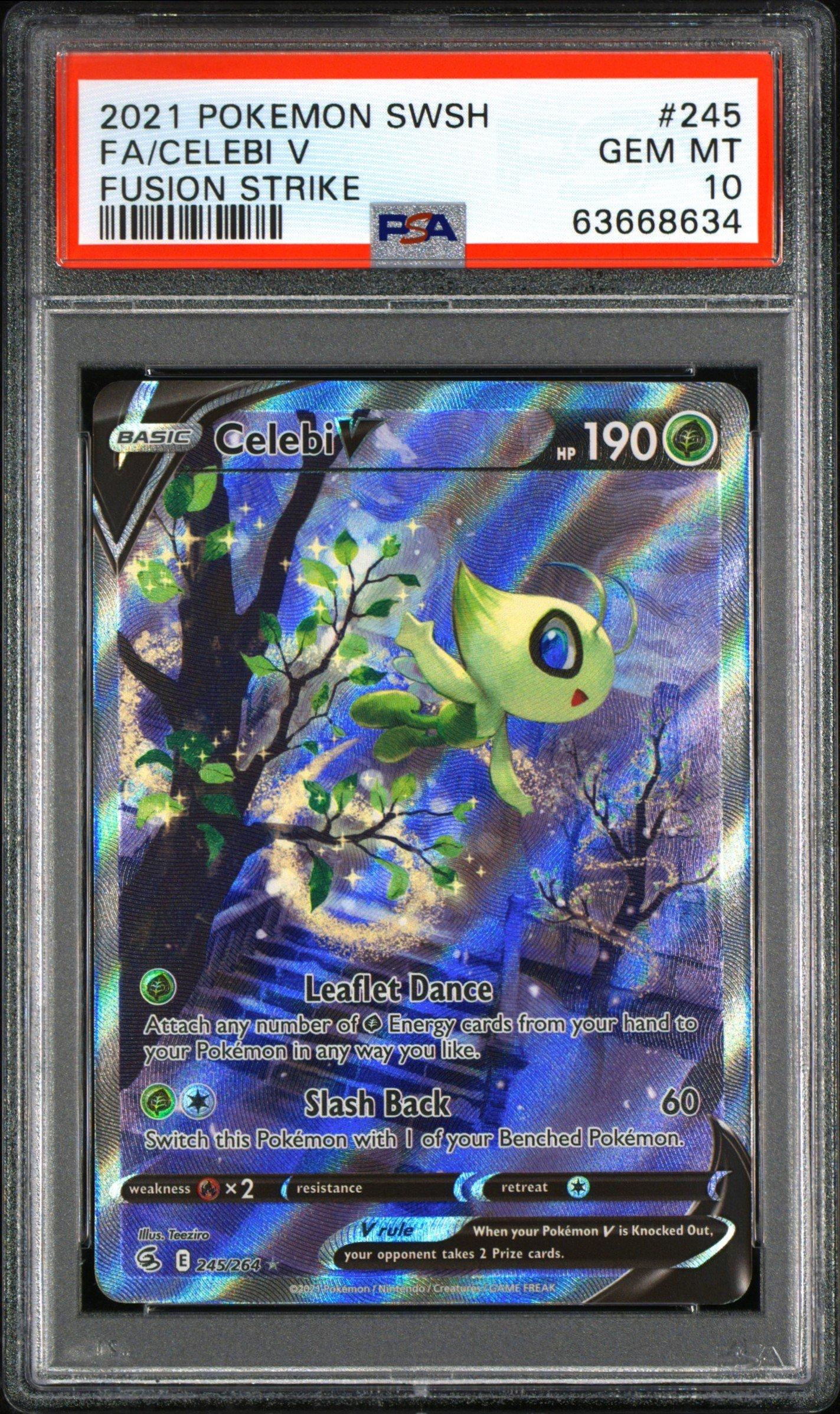 2021 Pokemon Sword & Shield Fusion Strike 245 Full Art/celebi V PSA