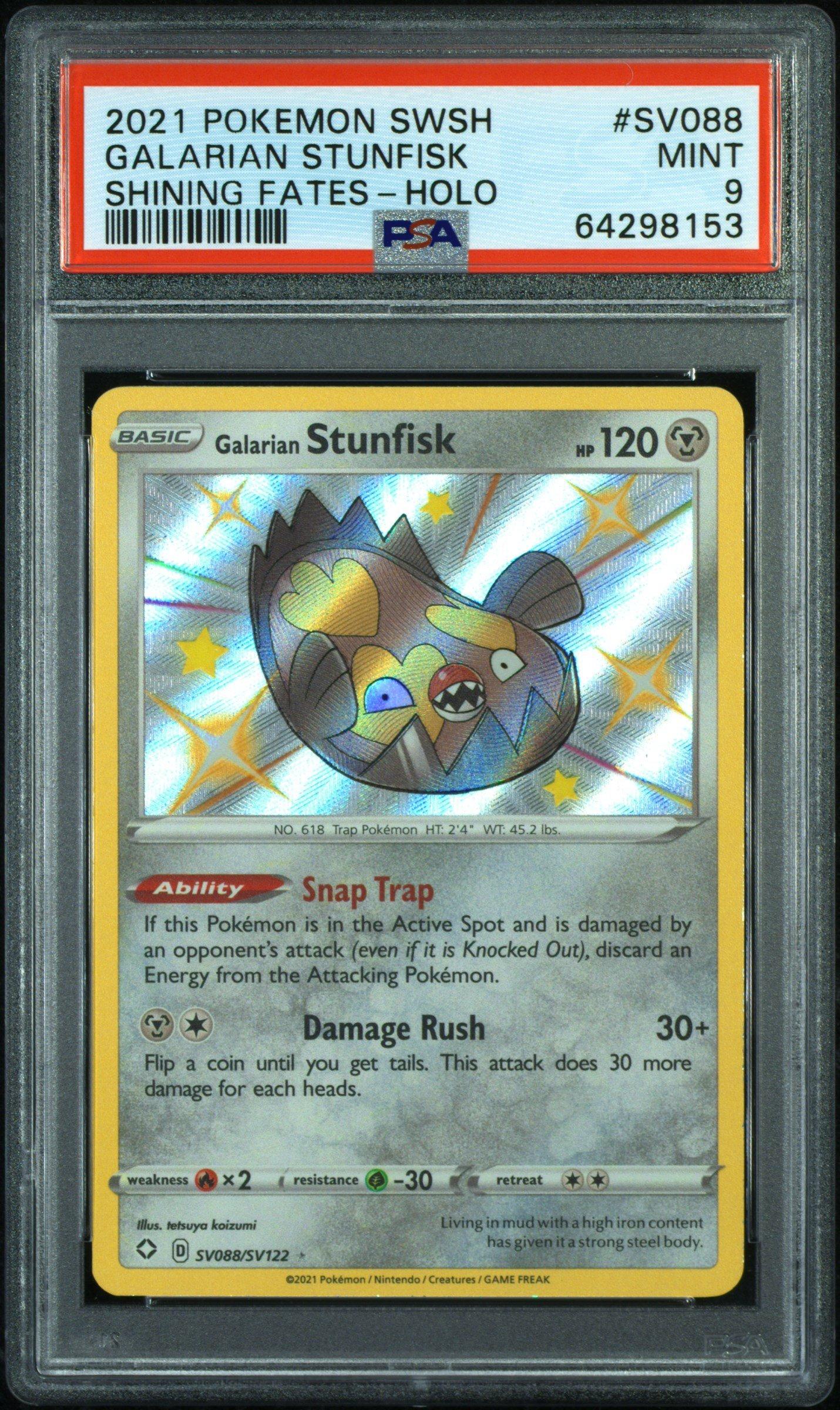 2021 Pokemon Sword & Shield Shining Fates Sv088 Galarian Stunfisk-holo PSA 92021 Pokemon Sword & Shield Shining Fates Sv088 Galarian Stunfisk-holo PSA 9