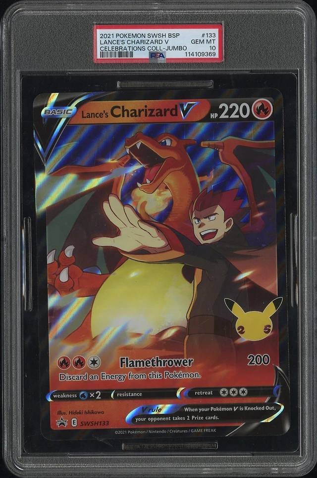 2021 Pokemon Swsh Black Star Promo 133 Lance's Charizard V Celebrations Collection-jumbo PSA