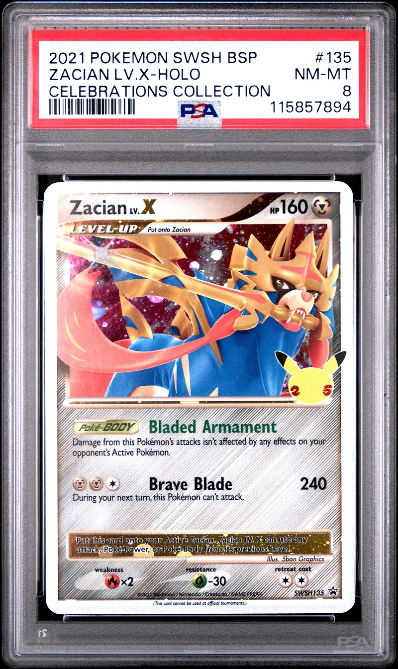2021 Pokemon Swsh Black Star Promo 135 Zacian Lv.x-holo Celebrations Collection PSA 8