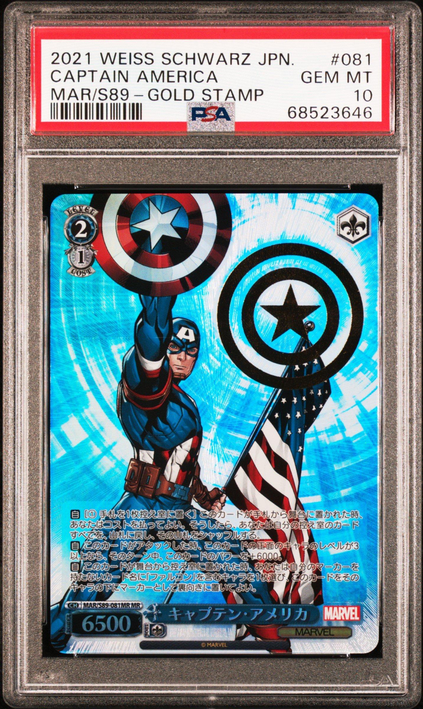 2021 Weiss Schwarz Japanese Marvel 081 Captain America Gold Stamp PSA 10