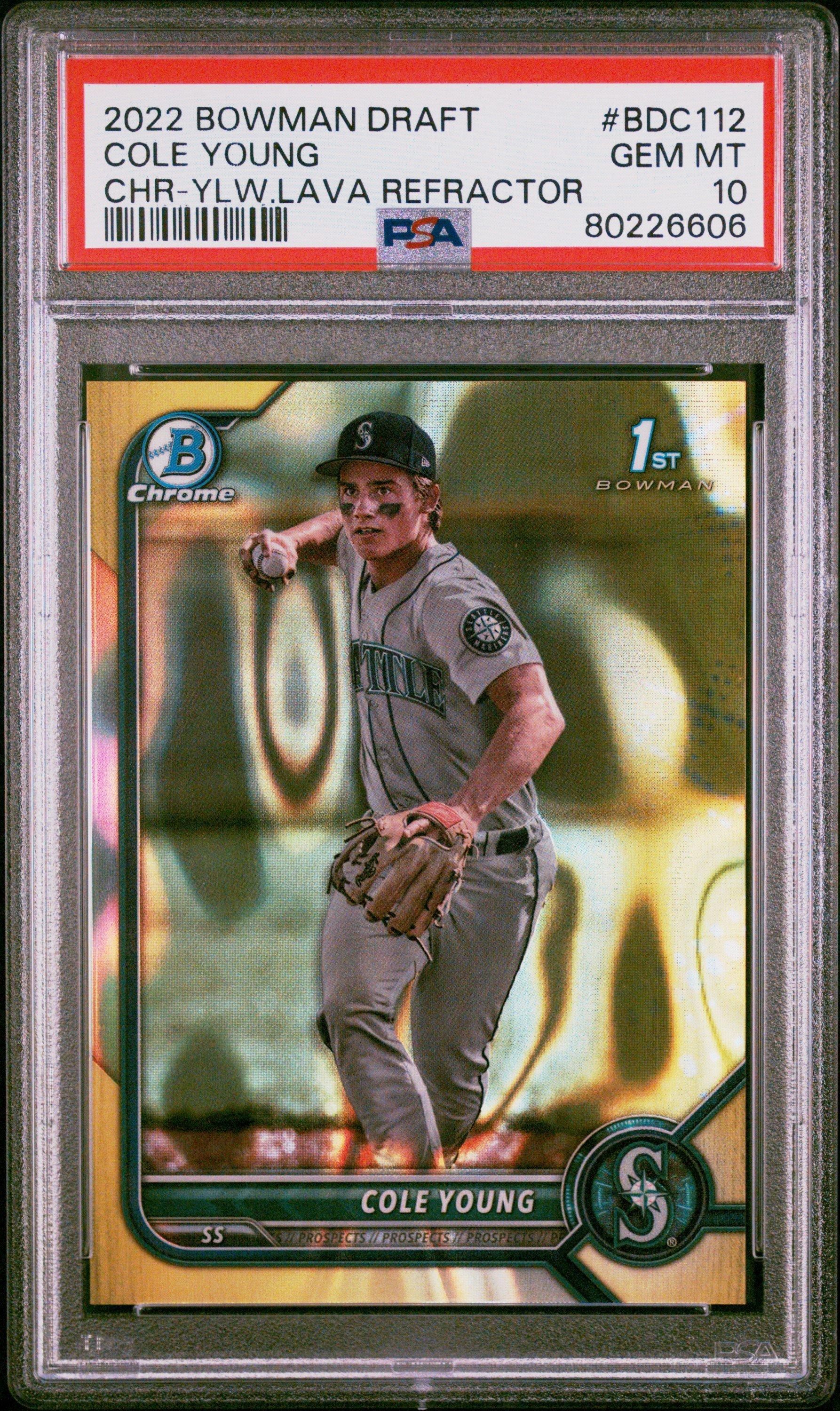 2022 Bowman Draft Bdc112 Cole Young Chrome-yellow Lava Refractor PSA 10