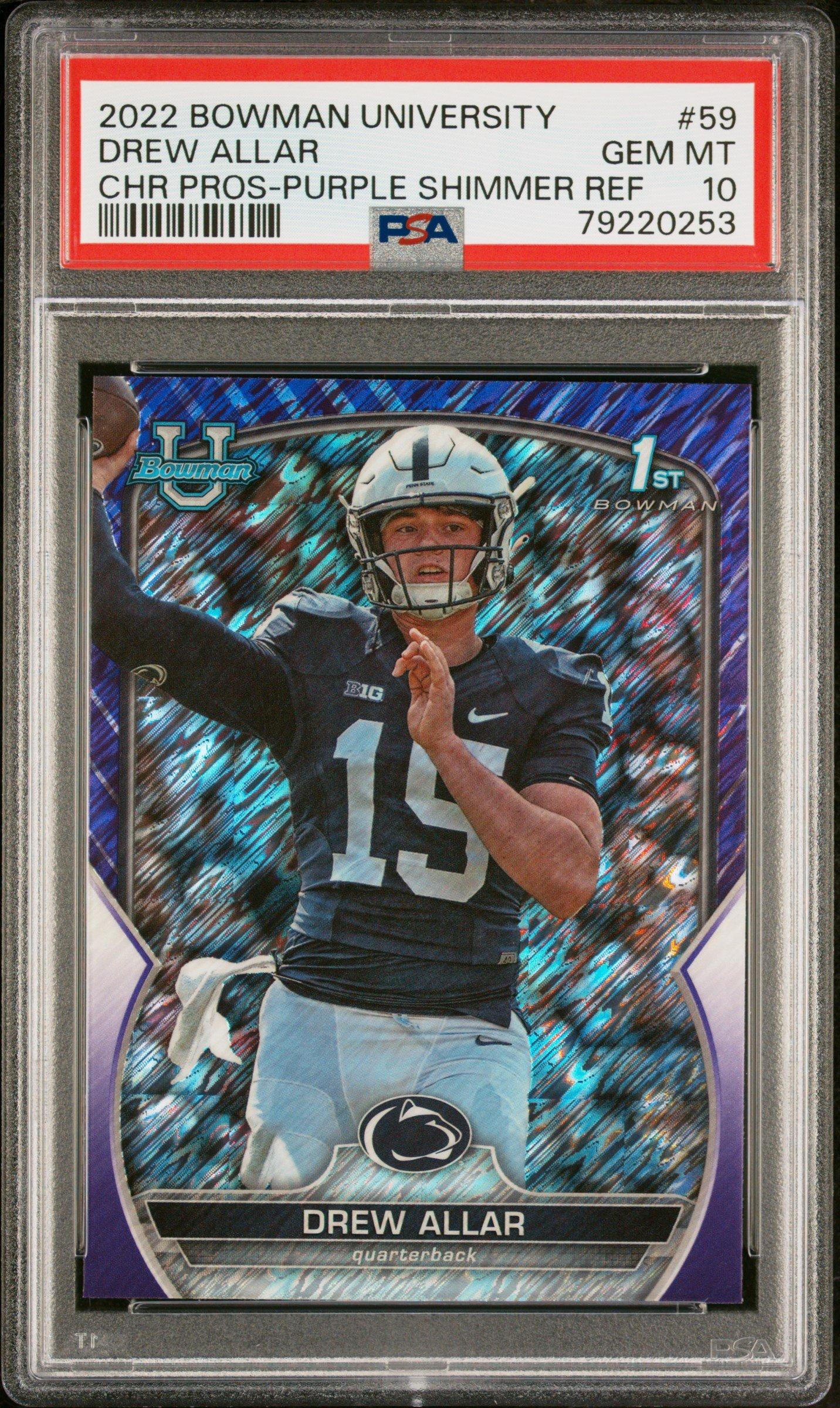 2022 Bowman University Chrome Prospects 59 Drew Allar Purple Shimmer Refractor PSA 10