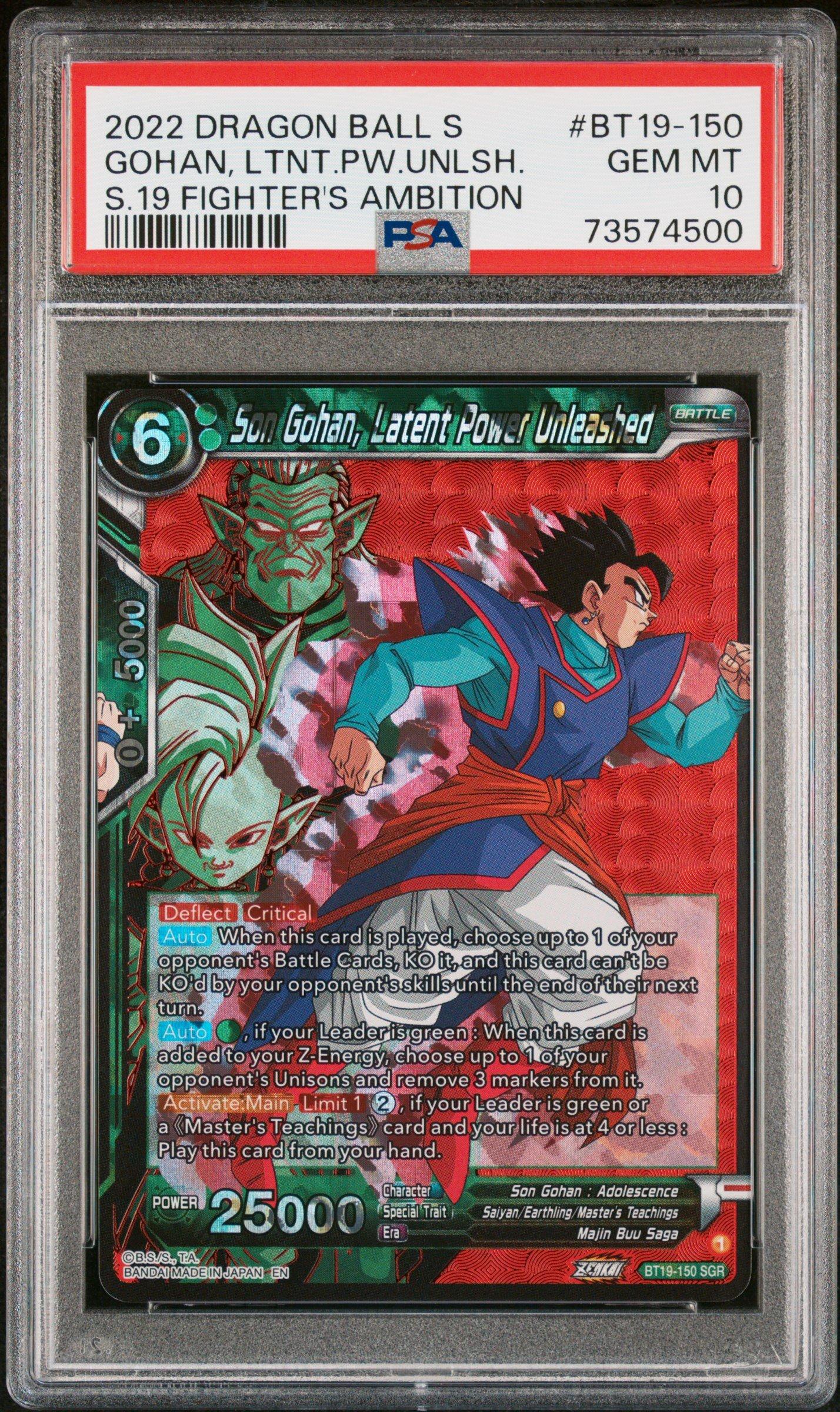 2022 Dragon Ball Super Card Game Series 19 Fighter's Ambition Bt19-150 Son Gohan, Latent Power Unleashed Son Gohan Rare PSA 10