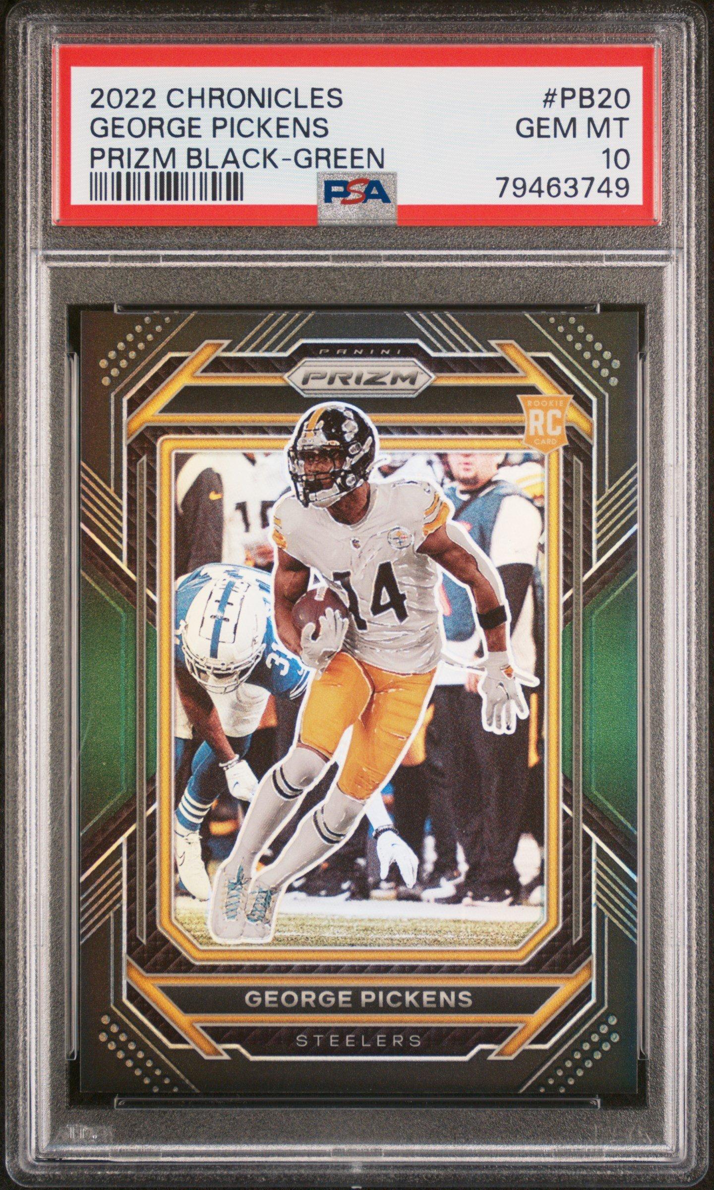 2022 Panini Chronicles Prizm Black Pb20 George Pickens Green PSA 102022 Panini Chronicles Prizm Black Pb20 George Pickens Green PSA 10