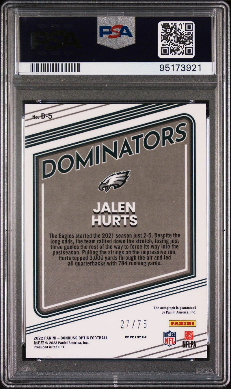 2022 Panini Donruss Optic Dominators D5 Jalen Hurts Autograph PSA 10