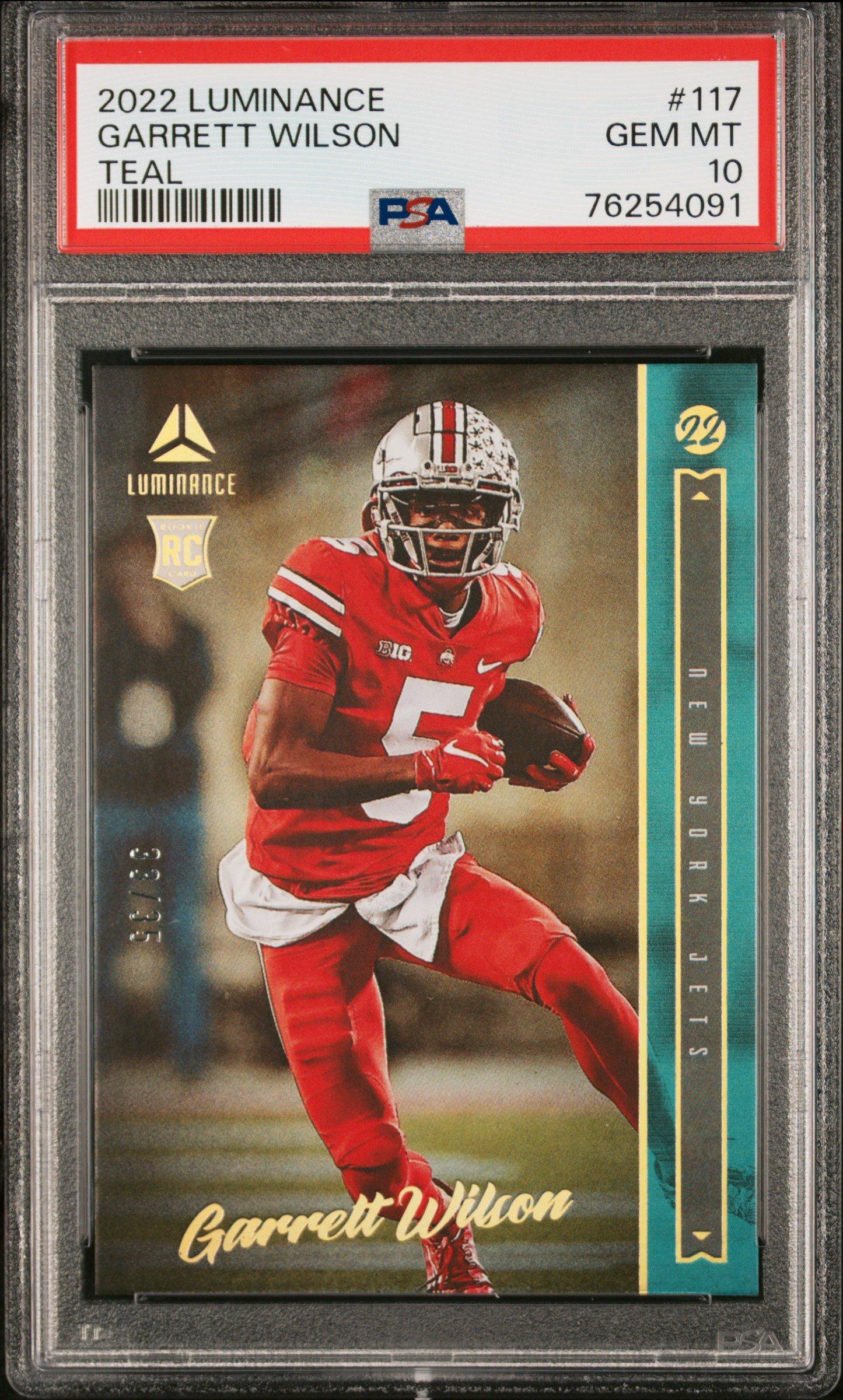 2022 Panini Luminance 117 Garrett Wilson Teal PSA 10