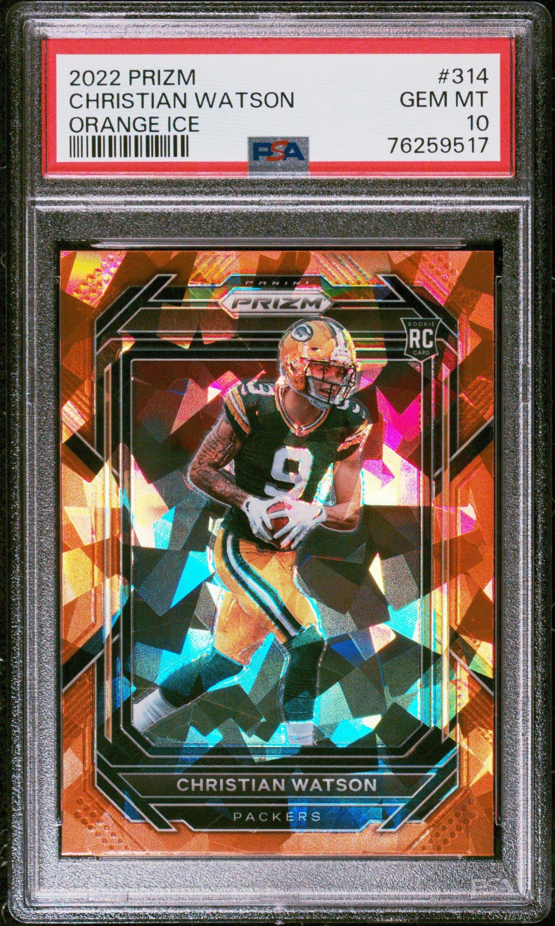 2022 Panini Prizm 314 Christian Watson Orange Ice PSA 10