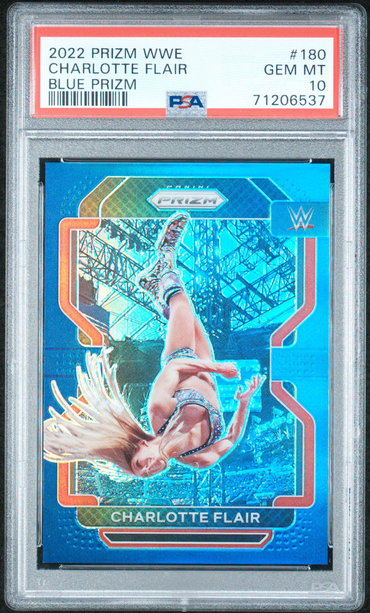 2022 Panini Prizm Wwe 180 Charlotte Flair Blue Prizm PSA 10