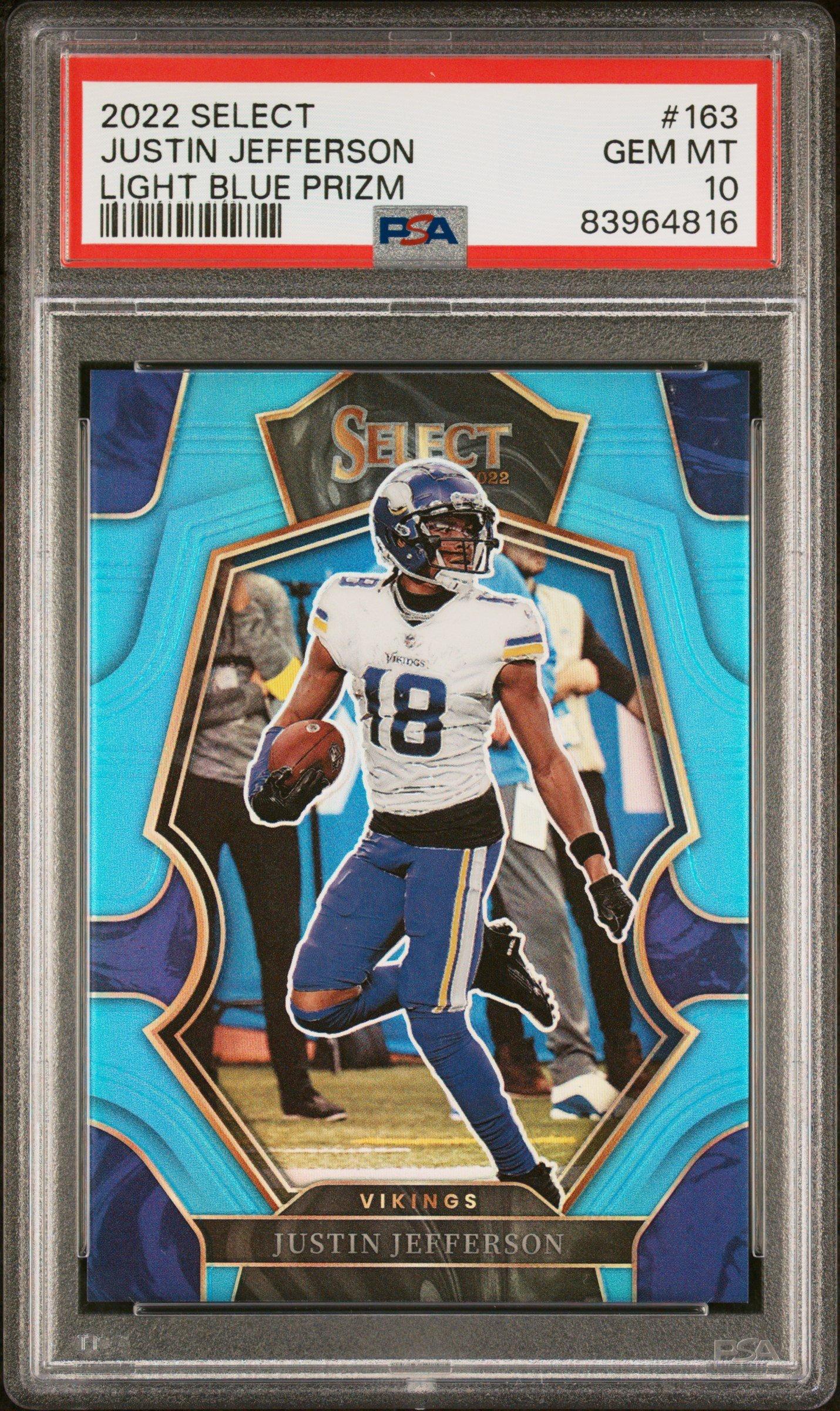 2022 Panini Select 163 Justin Jefferson Light Blue Prizm PSA 10