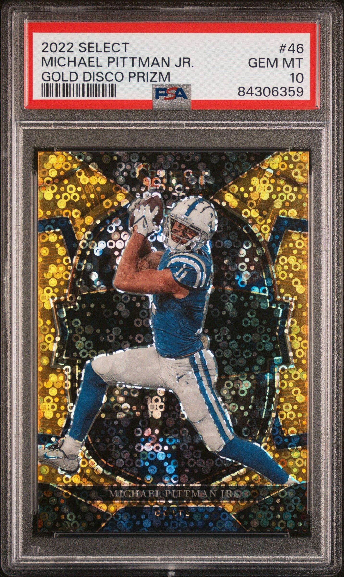 2022 Panini Select 46 Michael Pittman Jr. Gold Disco Prizm PSA 102022 Panini Select 46 Michael Pittman Jr. Gold Disco Prizm PSA 10