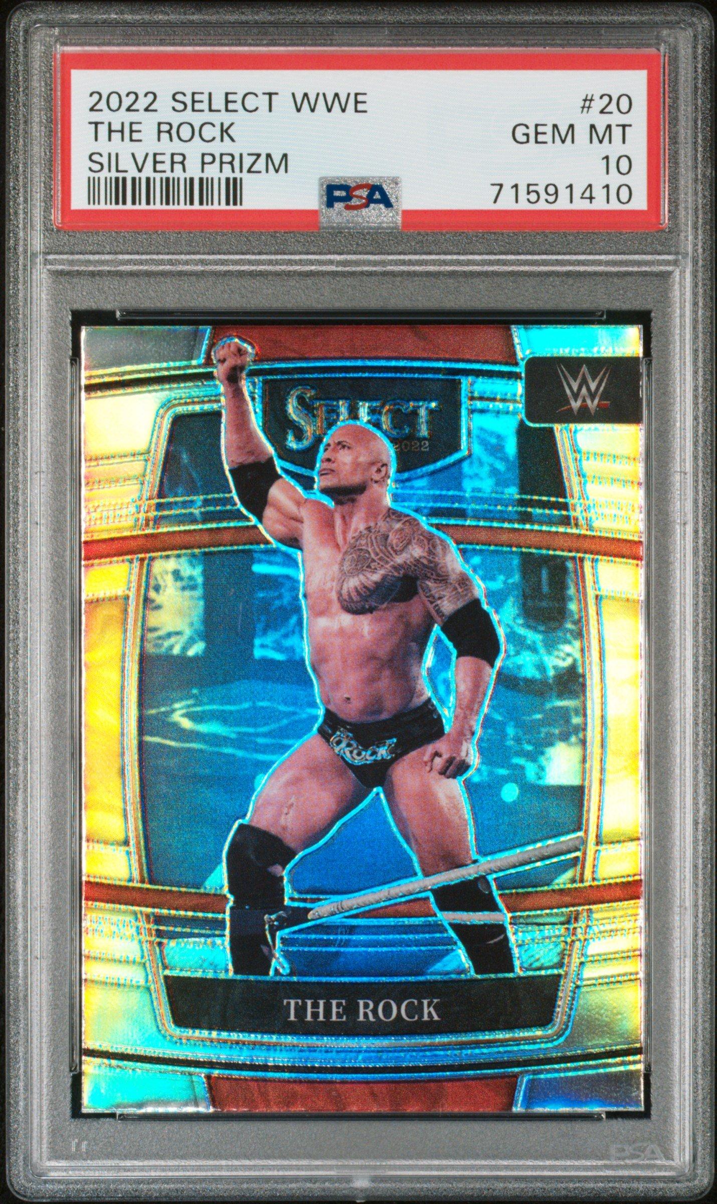2022 Panini Select Wwe 20 The Rock Silver Prizm PSA 10