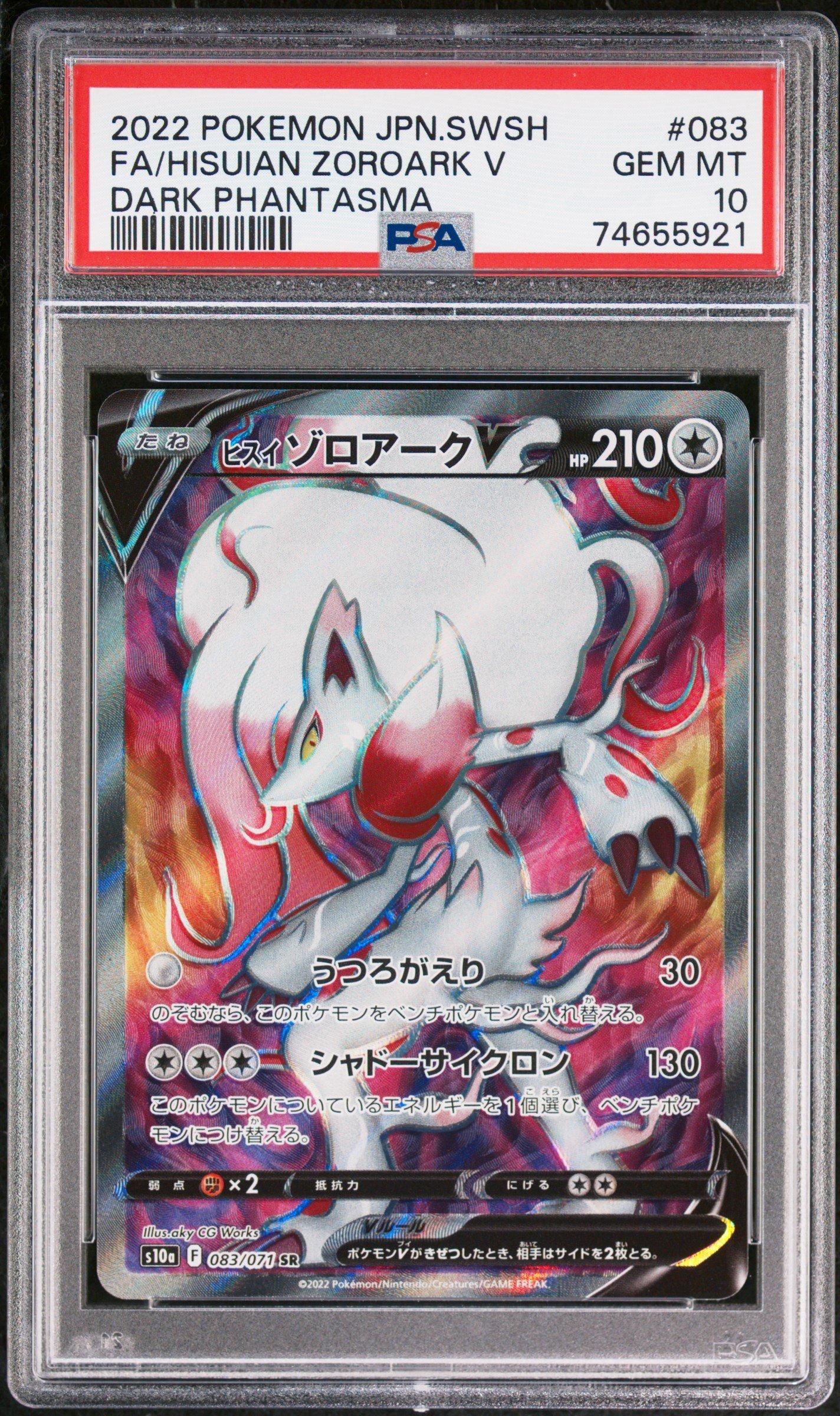 2022 Pokemon Japanese Sword & Shield Dark Phantasma 083 Full Art/hisuian Zoroark V PSA 102022 Pokemon Japanese Sword & Shield Dark Phantasma 083 Full Art/hisuian Zoroark V PSA 10