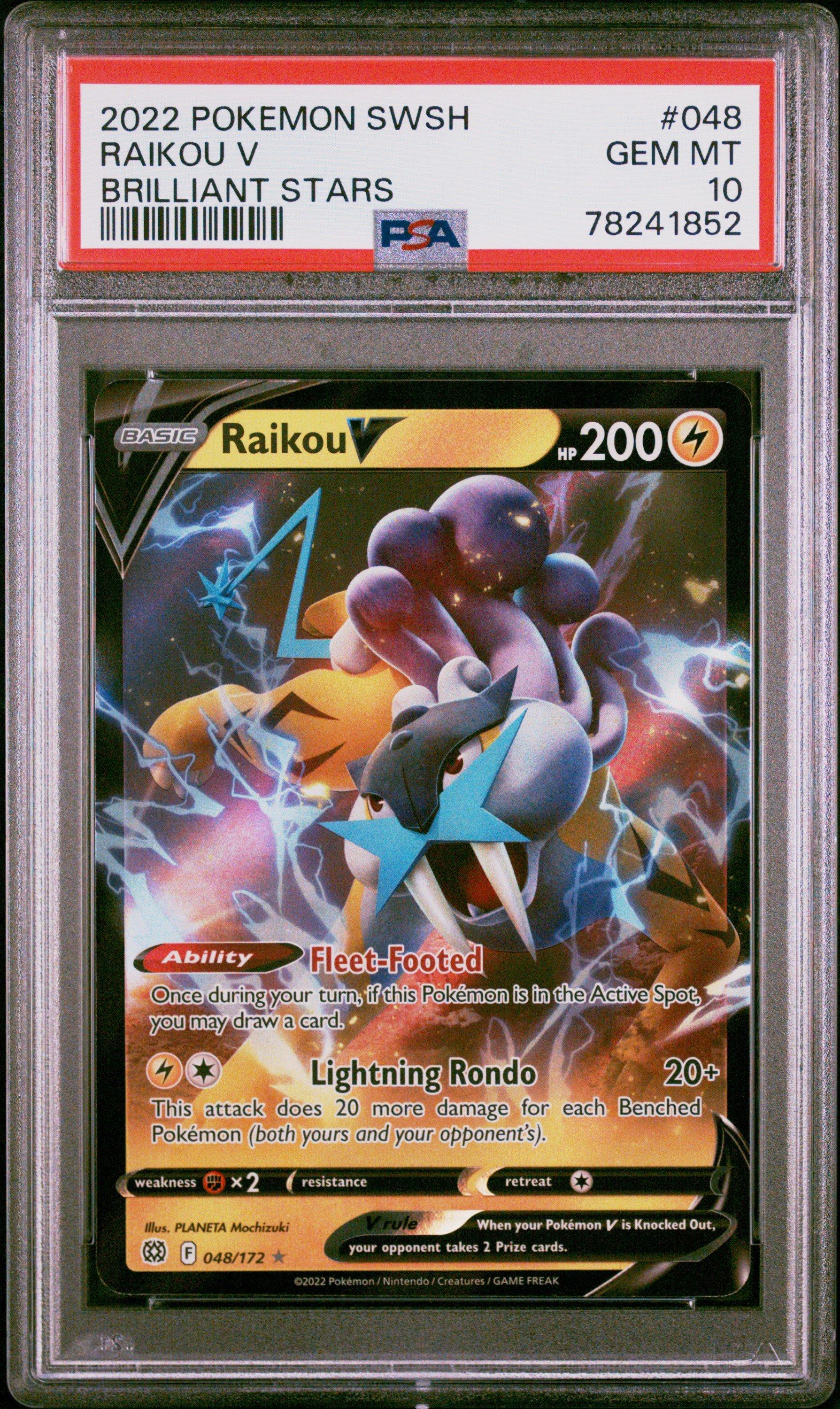 2022 Pokemon Sword & Shield Brilliant Stars 048 Raikou V PSA2022 Pokemon Sword & Shield Brilliant Stars 048 Raikou V PSA