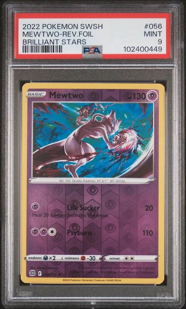 2022 Pokemon Sword & Shield Brilliant Stars 056 Mewtwo-reverse Foil PSA