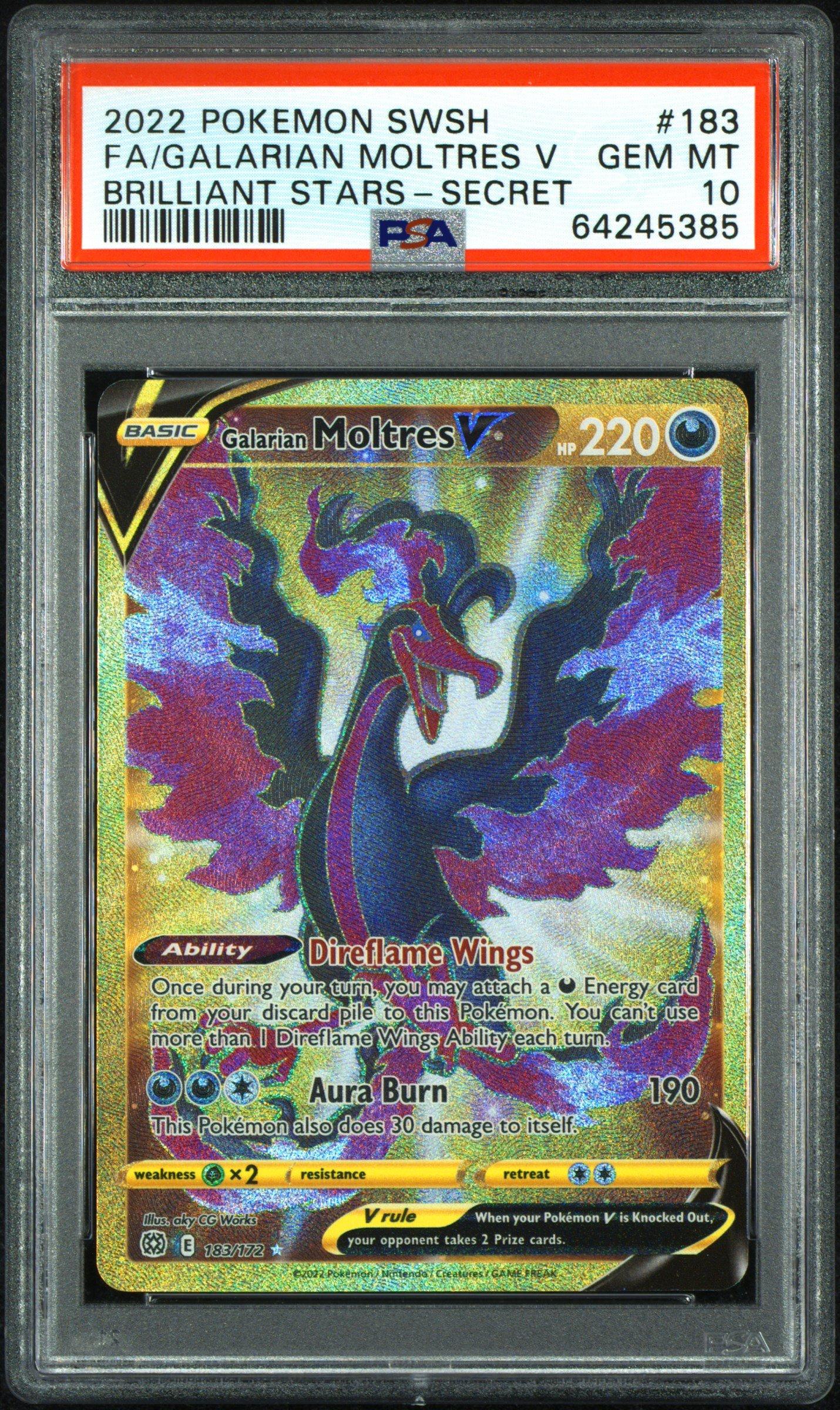 2022 Pokemon Sword & Shield Brilliant Stars 183 Full Art/galarian Moltres V Secret PSA