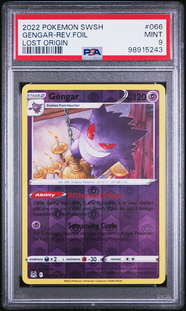2022 Pokemon Sword & Shield Lost Origin 066 Gengar-reverse Foil PSA 9