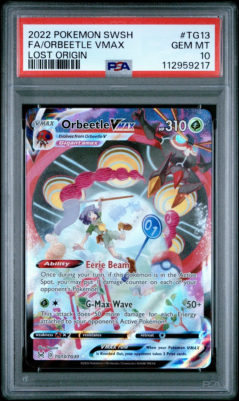 2022 Pokemon Sword & Shield Lost Origin Tg13 Full Art/orbeetle Vmax PSA 10
