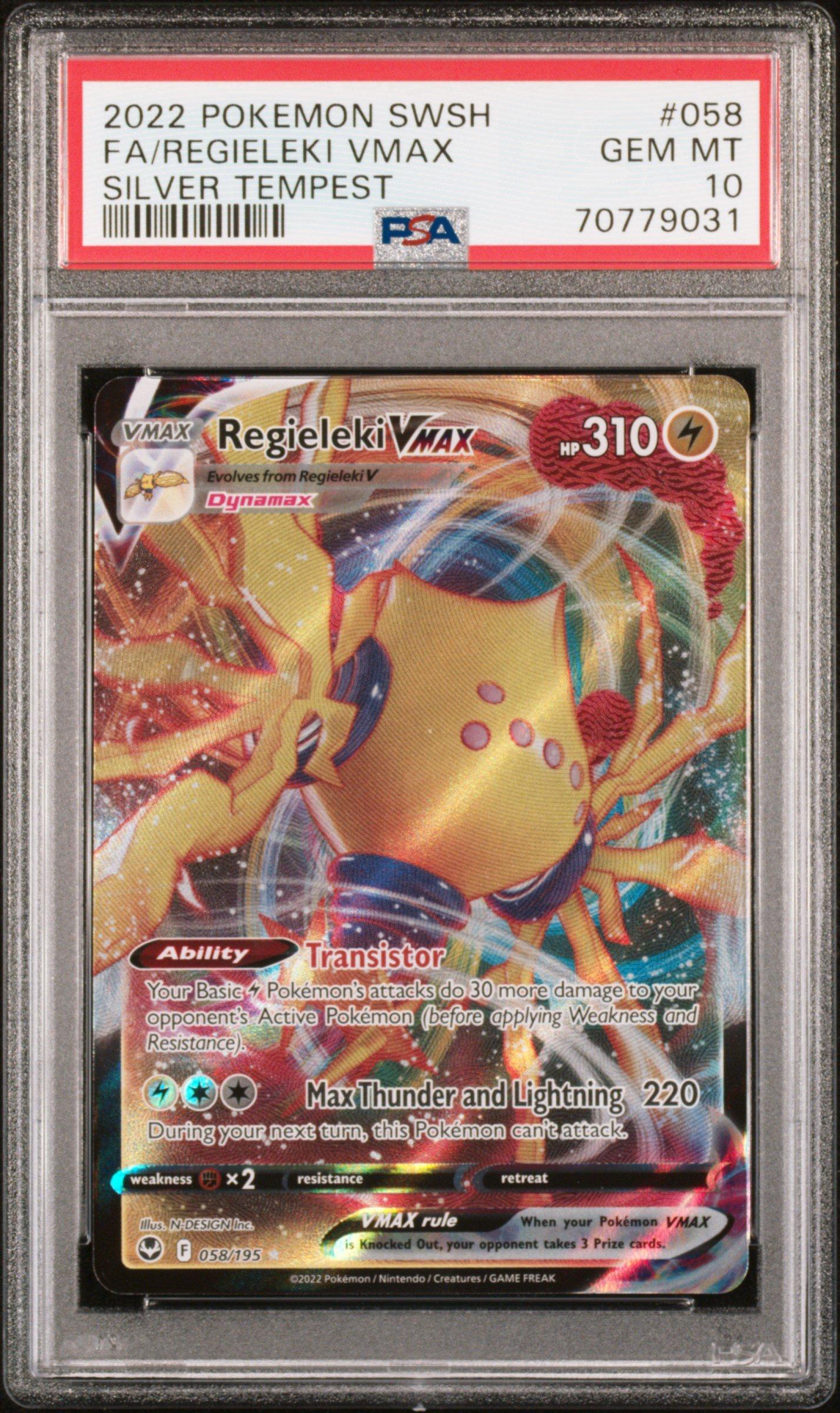 2022 Pokemon Sword & Shield Silver Tempest 058 Full Art/regieleki Vmax PSA 10