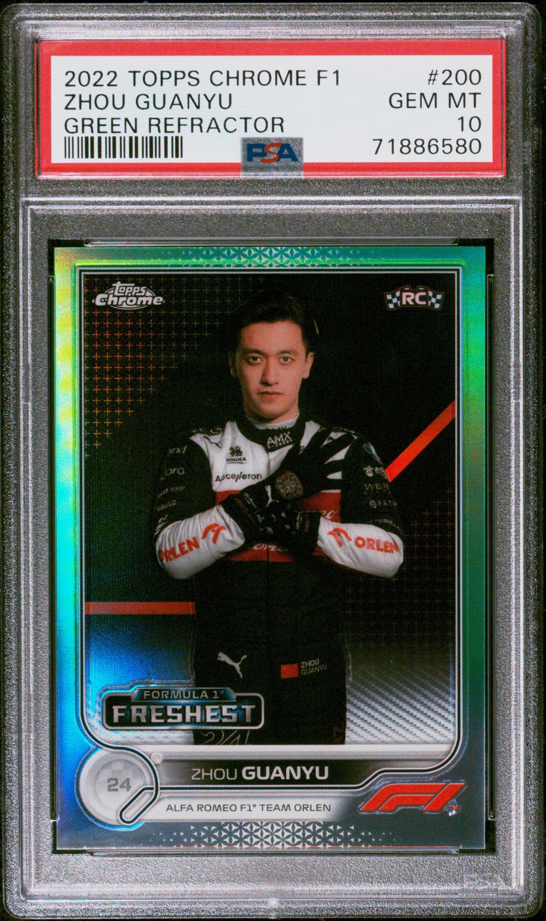 2022 Topps Chrome Formula 1 200 Zhou Guanyu Green Refractor PSA 10