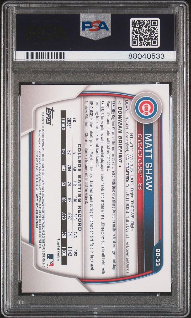 2023 Bowman Draft Bd33 Matt Shaw PSA 9