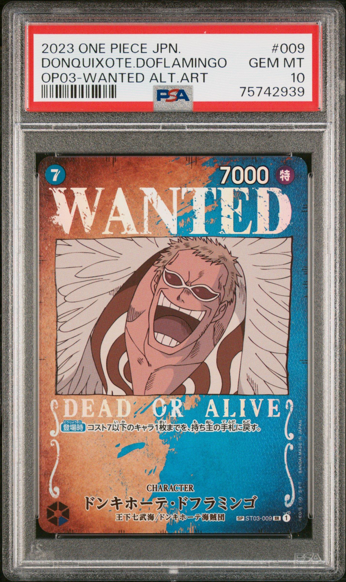 2023 One Piece Japanese Op03-pillars Of Strength 009 Donquixote Doflamingo Wanted Alternate Art PSA 10