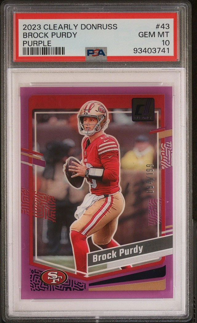 2023 Panini Clearly Donruss 43 Brock Purdy Purple PSA 10