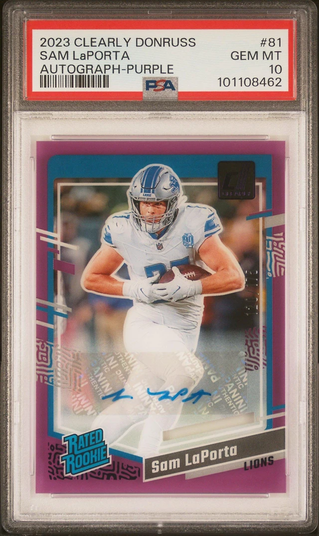 2023 Panini Clearly Donruss 81 Sam Laporta Autograph-purple PSA 10