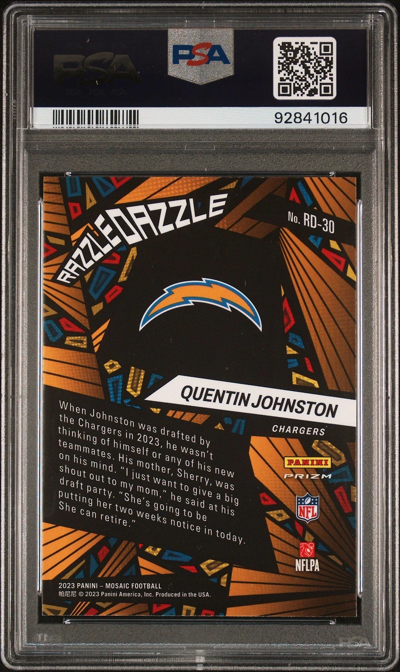 2023 Panini Mosaic Razzle Dazzle Rd30 Quentin Johnston PSA 10