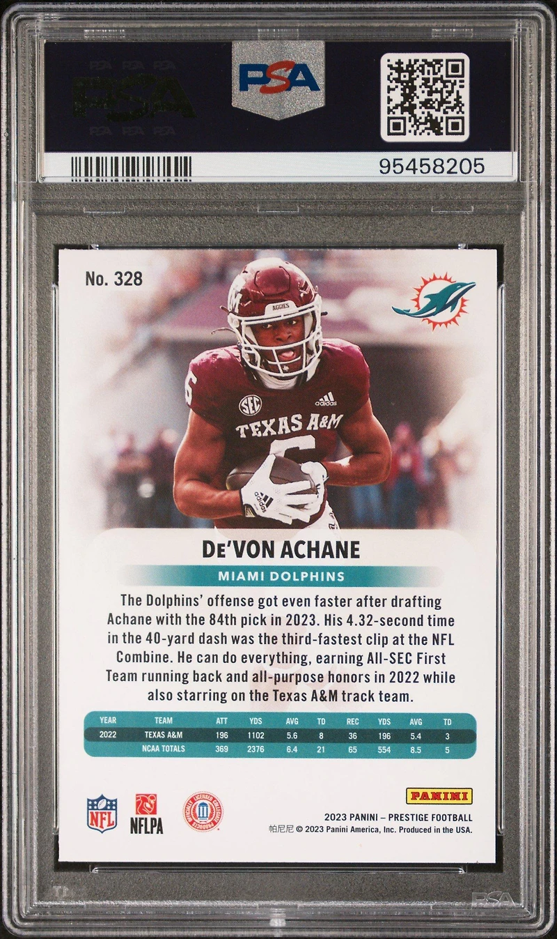 2023 Panini Prestige 328 De'von Achane Hyper Xtra Points PSA 10