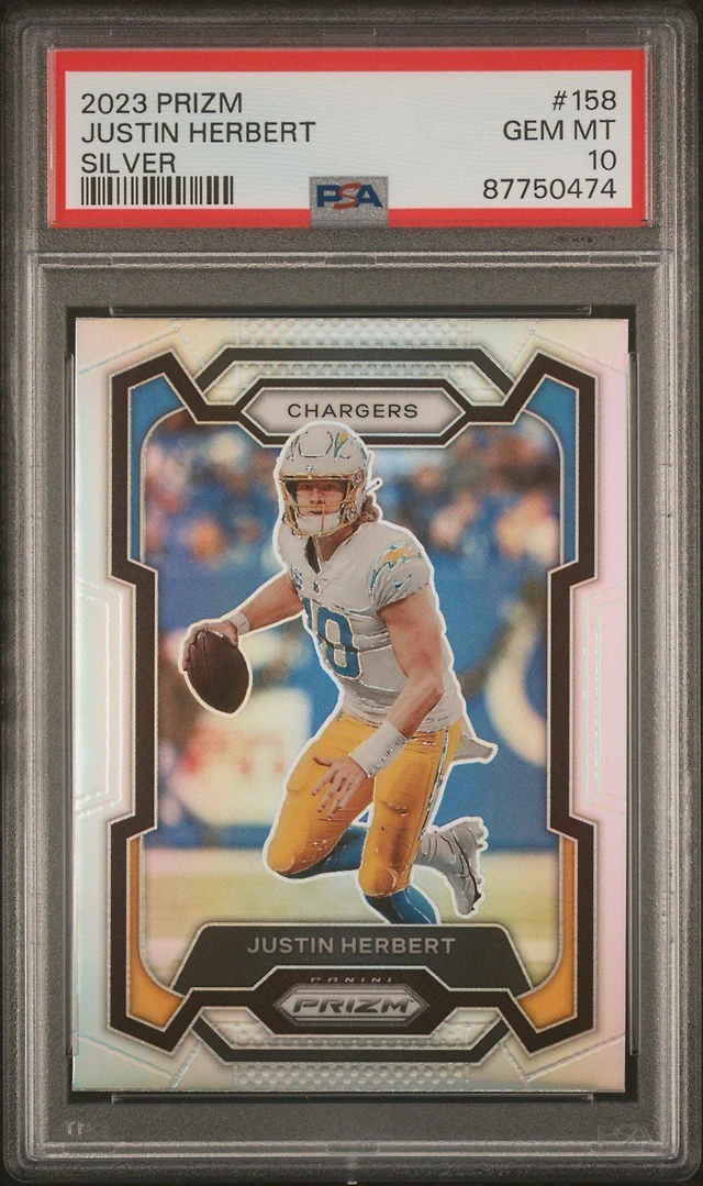 2023 Panini Prizm 158 Justin Herbert Silver Prizm PSA 10