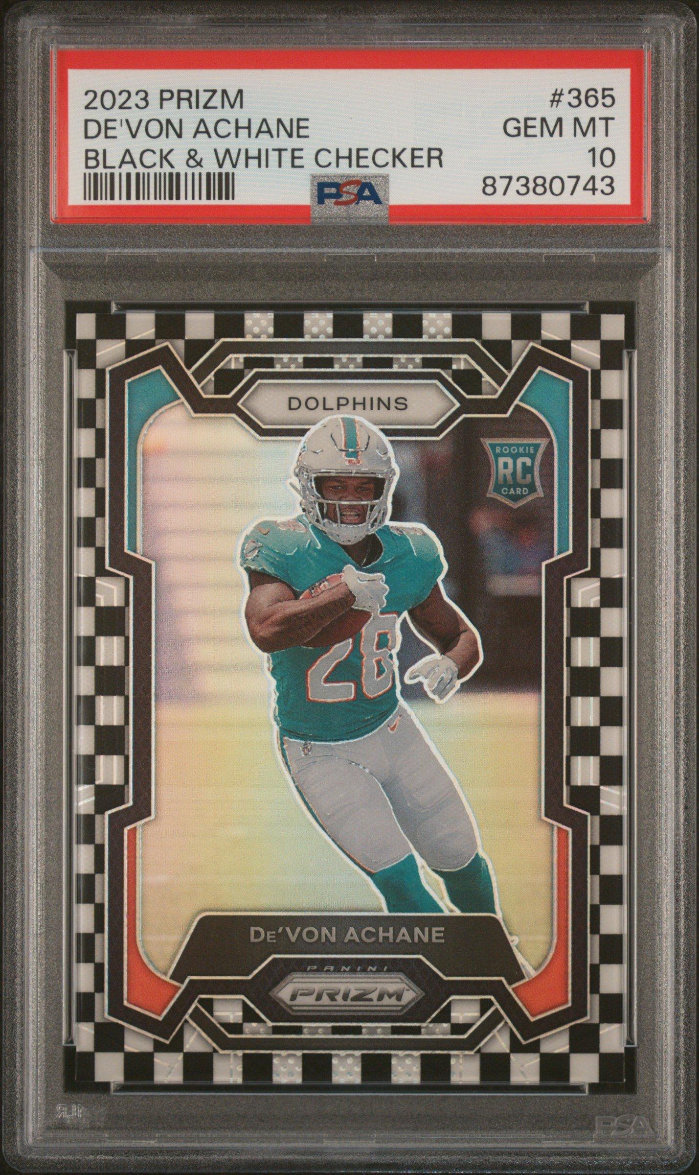 2023 Panini Prizm 365 De'von Achane Black & White Checker PSA 102023 Panini Prizm 365 De'von Achane Black & White Checker PSA 10