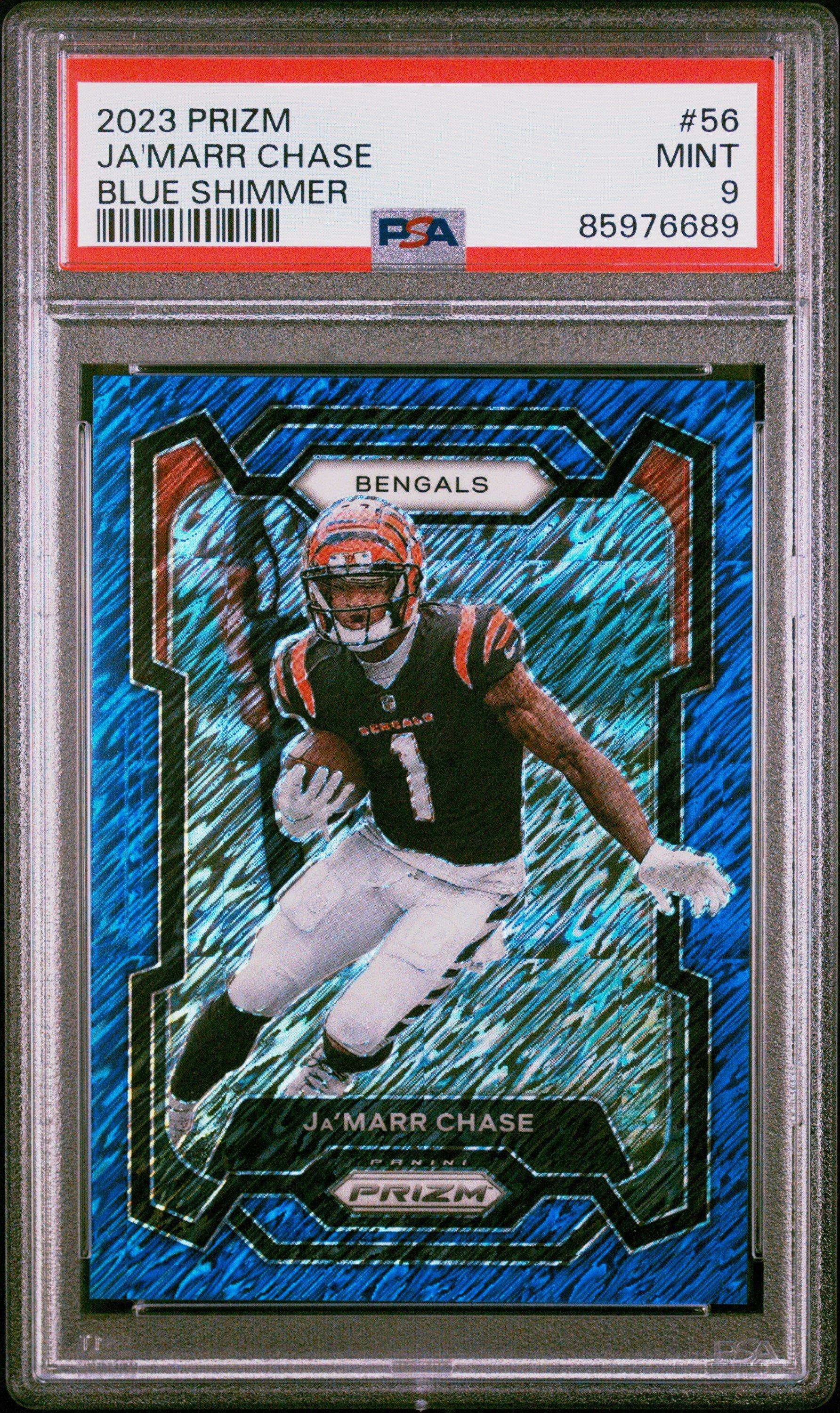 2023 Panini Prizm 56 Ja'marr Chase Blue Shimmer PSA 9