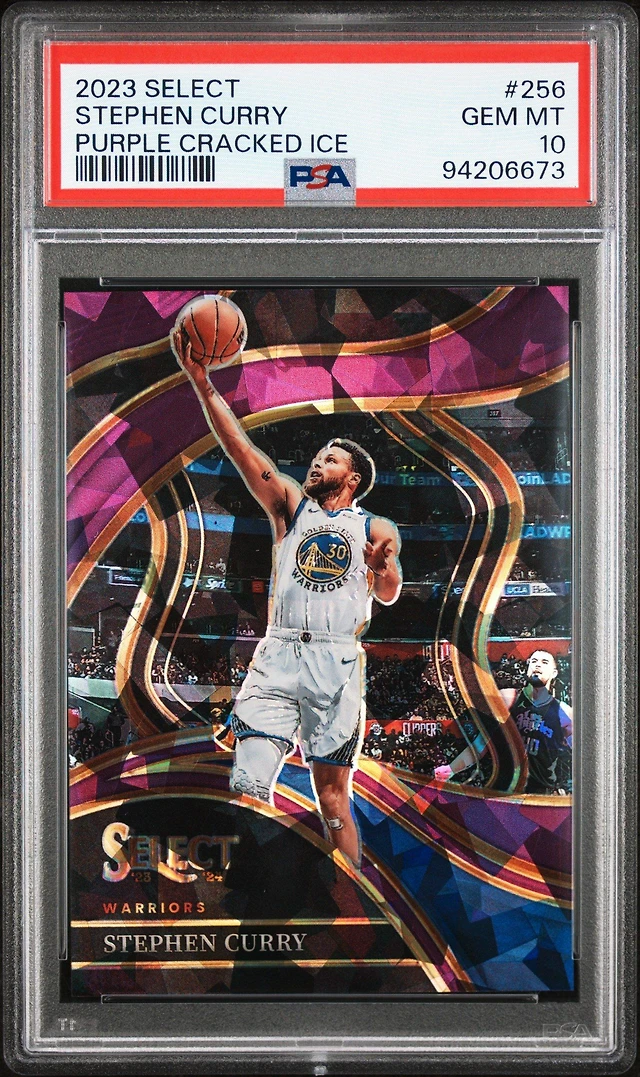 2023 Panini Select 256 Stephen Curry Purple Cracked Ice PSA 10