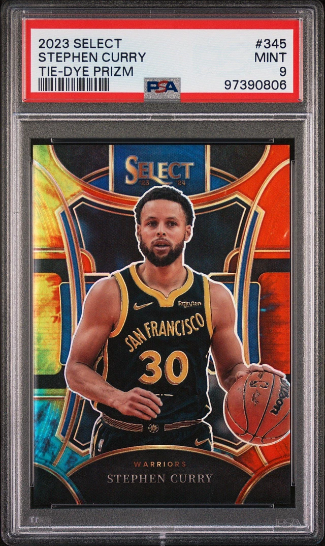 2023 Panini Select 345 Stephen Curry Tie-dye Prizm PSA 9