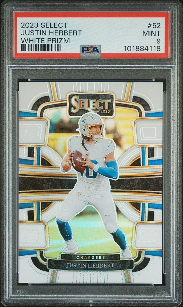 2023 Panini Select 52 Justin Herbert White Prizm PSA 9