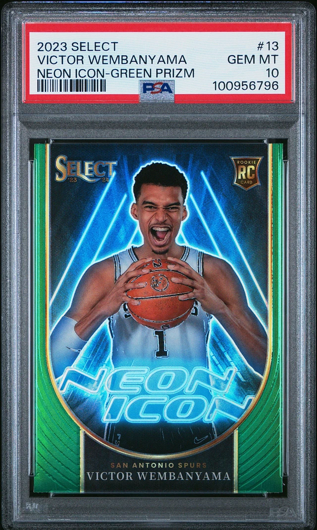 2023 Panini Select Neon Icon 13 Victor Wembanyama Green Prizm PSA 10