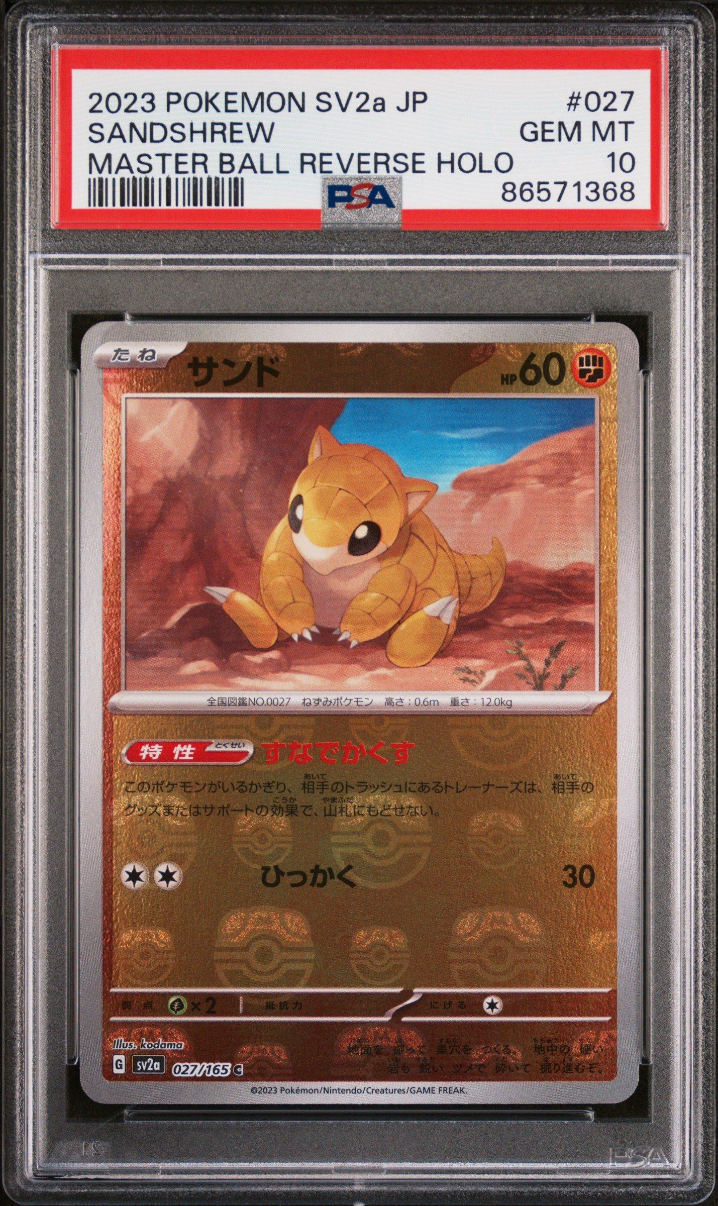 2023 Pokemon Japanese Sv2a-pokemon 151 027 Sandshrew Master Ball Reverse Holo PSA 10