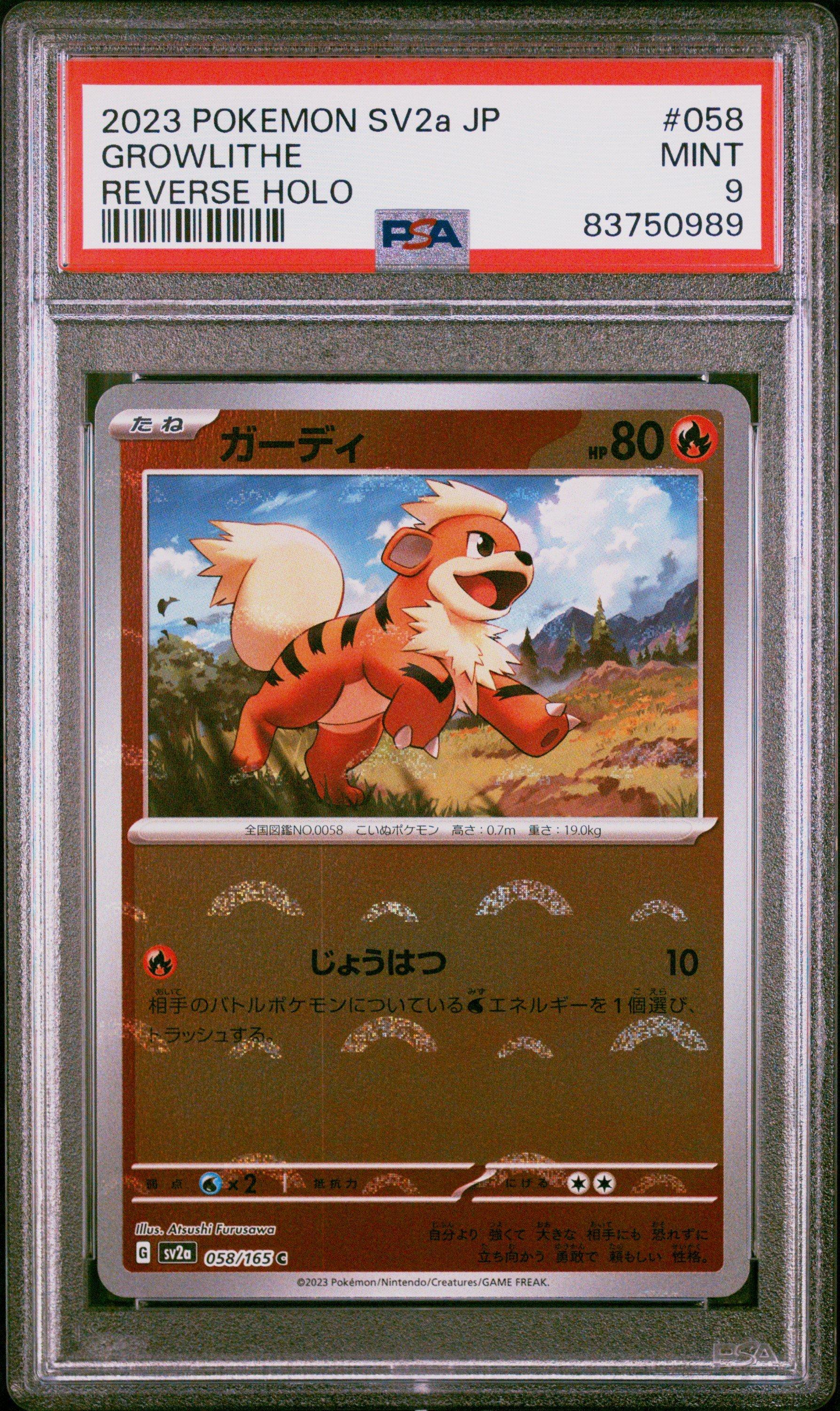 2023 Pokemon Japanese Sv2a-pokemon 151 058 Growlithe Reverse Holo PSA 9
