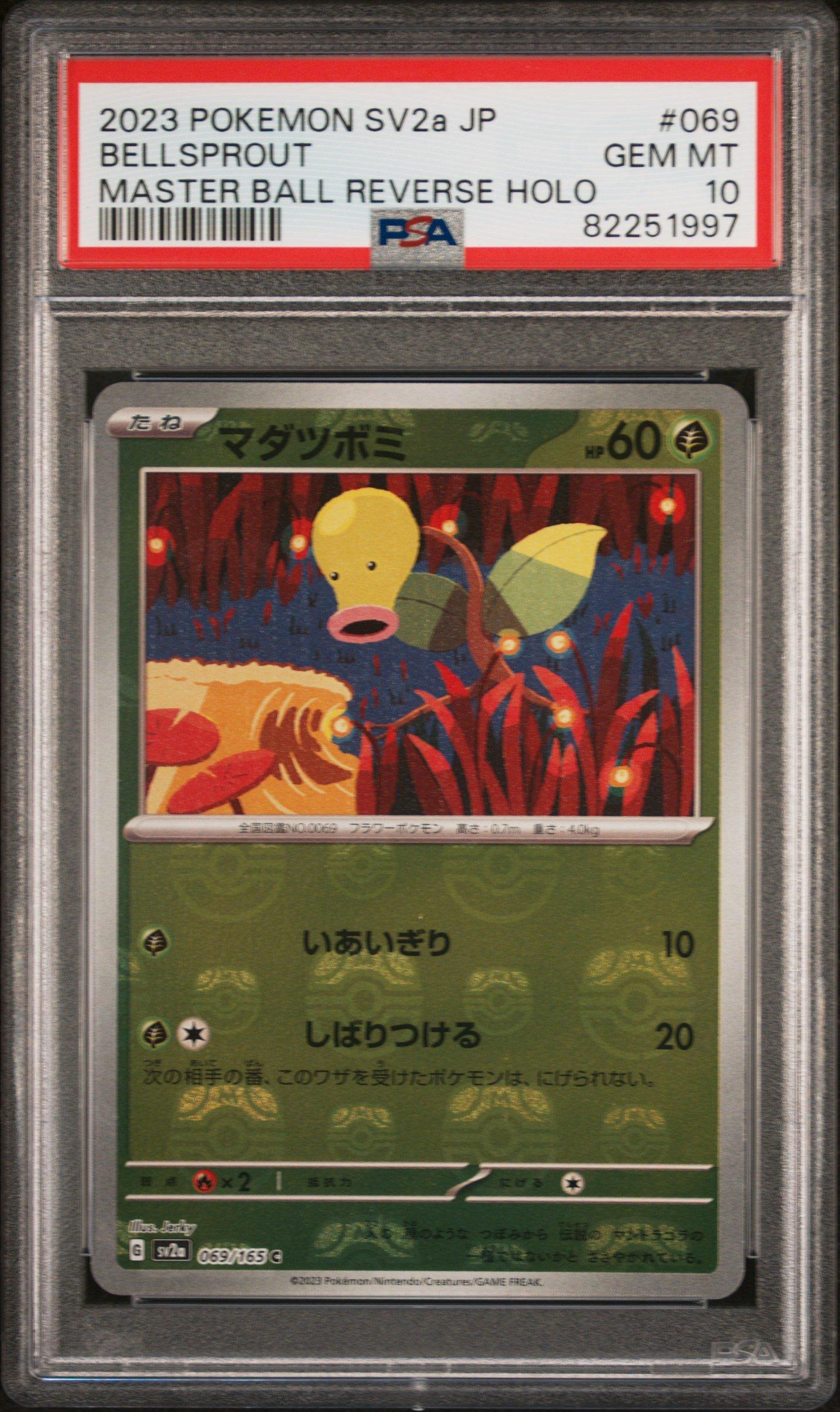 2023 Pokemon Japanese Sv2a-pokemon 151 069 Bellsprout Master Ball Reverse Holo PSA 10