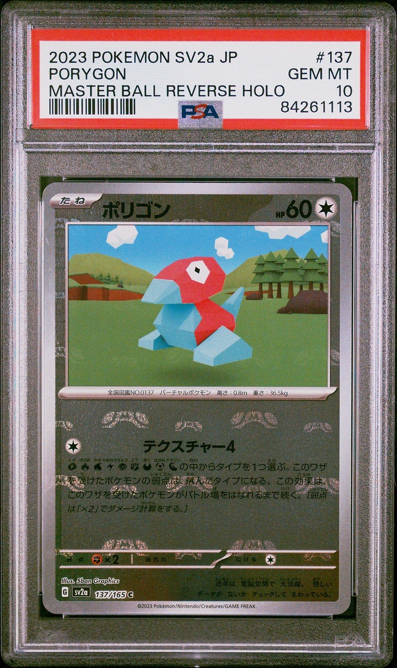 2023 Pokemon Japanese Sv2a-pokemon 151 137 Porygon Master Ball Reverse Holo PSA 102023 Pokemon Japanese Sv2a-pokemon 151 137 Porygon Master Ball Reverse Holo PSA 10