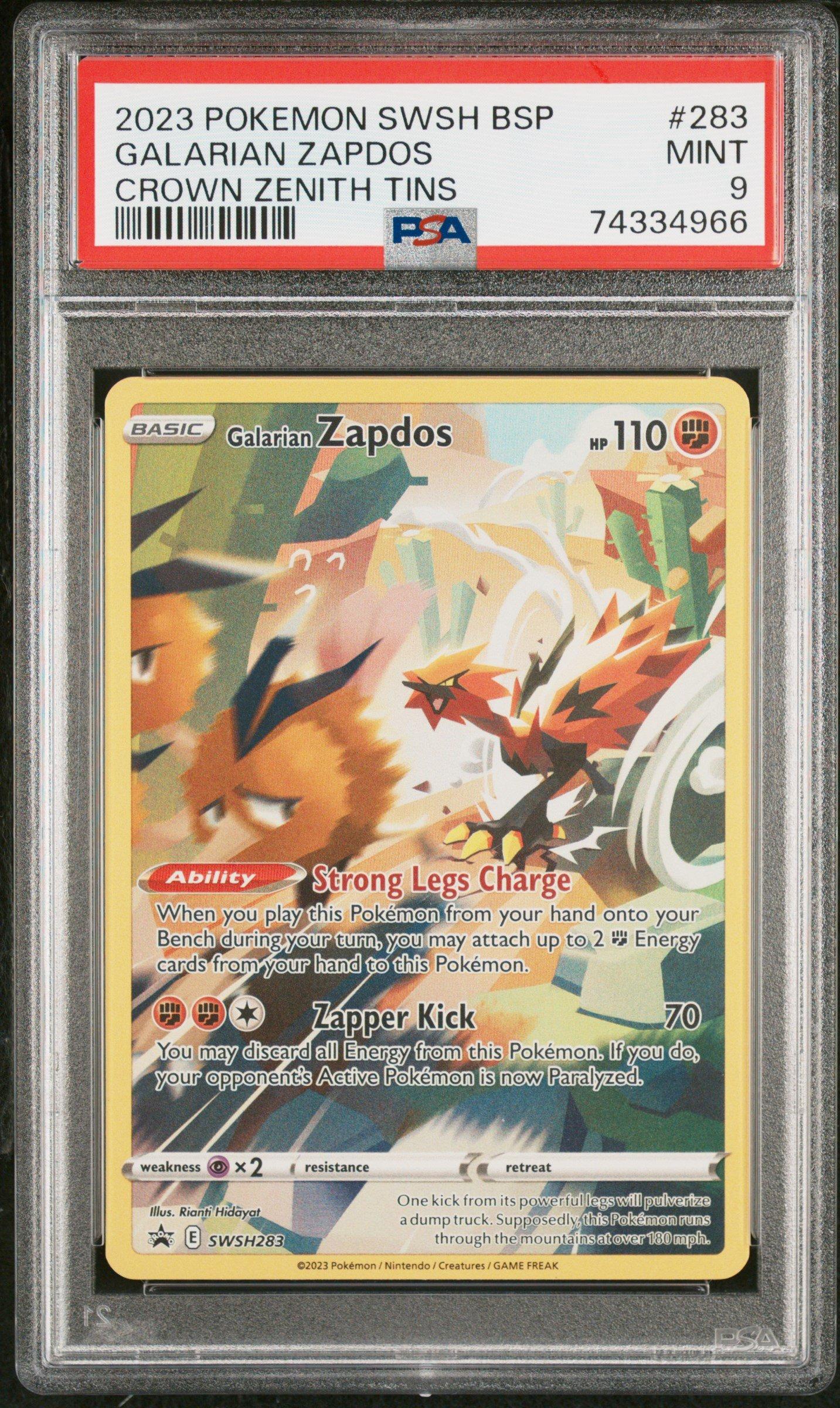 2023 Pokemon Swsh Black Star Promo 283 Galarian Zapdos Crown Zenith Tin PSA