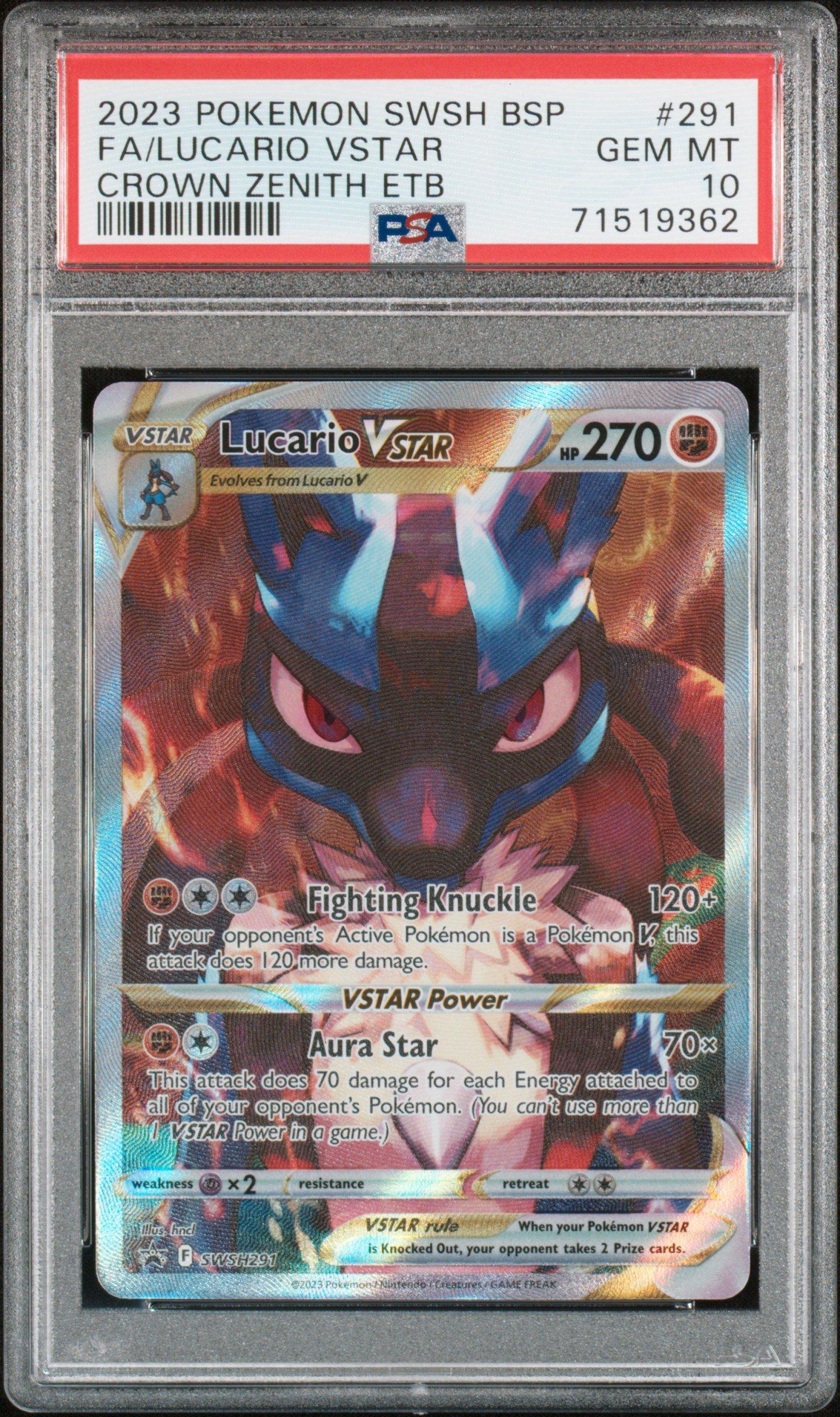 2023 Pokemon Swsh Black Star Promo 291 Full Art/lucario Vstar Crown Zenith Elite Trainer Box PSA